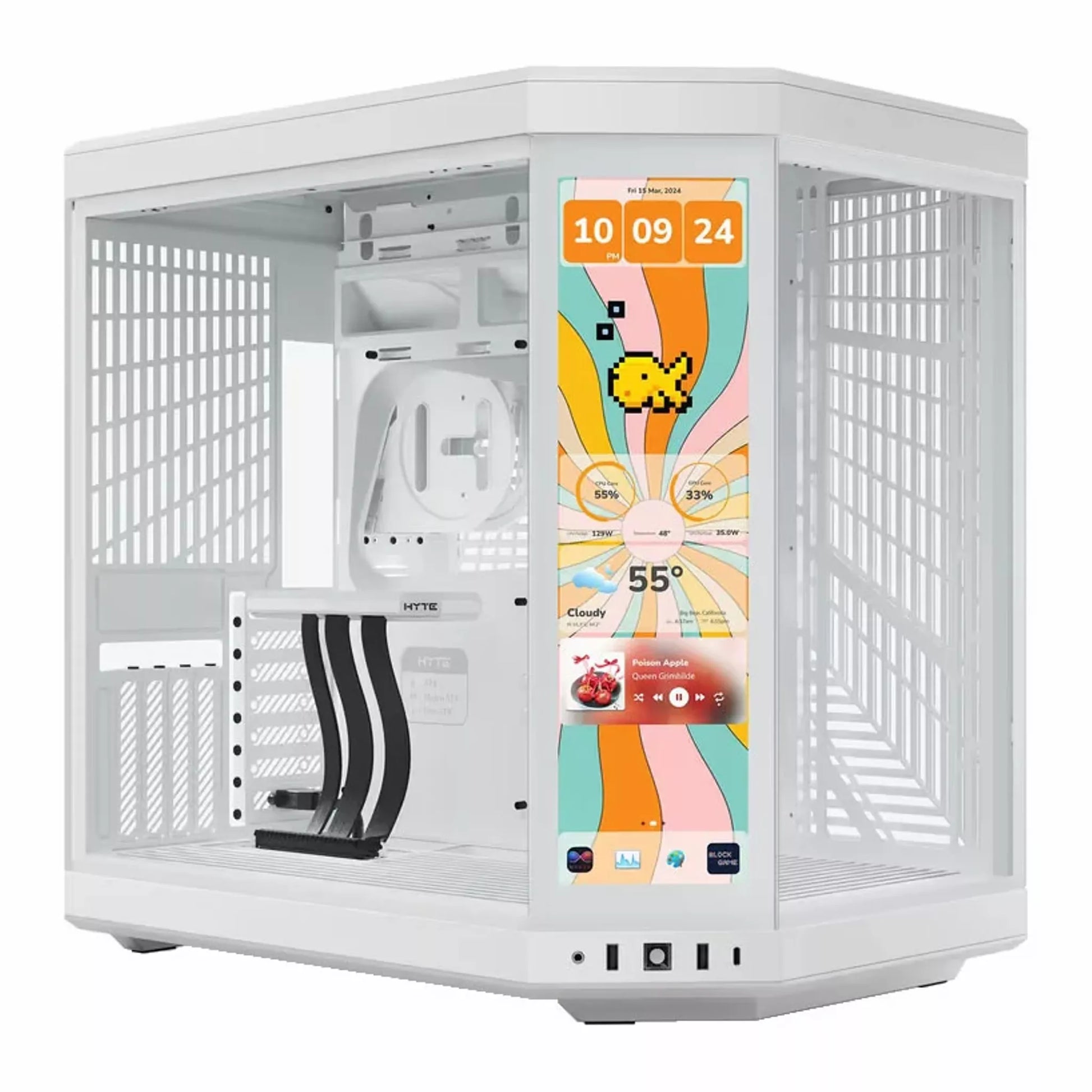 The Hyte Y70 Touch takes modern PC design to the next level, pairing cutting-edge performance with a built-in 14.1″ 1100p capacitive touchscreen display on the front panel. Available in stealthy black or clean white, it’s the perfect choice for gamers and creators who want a PC that doesn’t just perform flawlessly—it interacts with them.